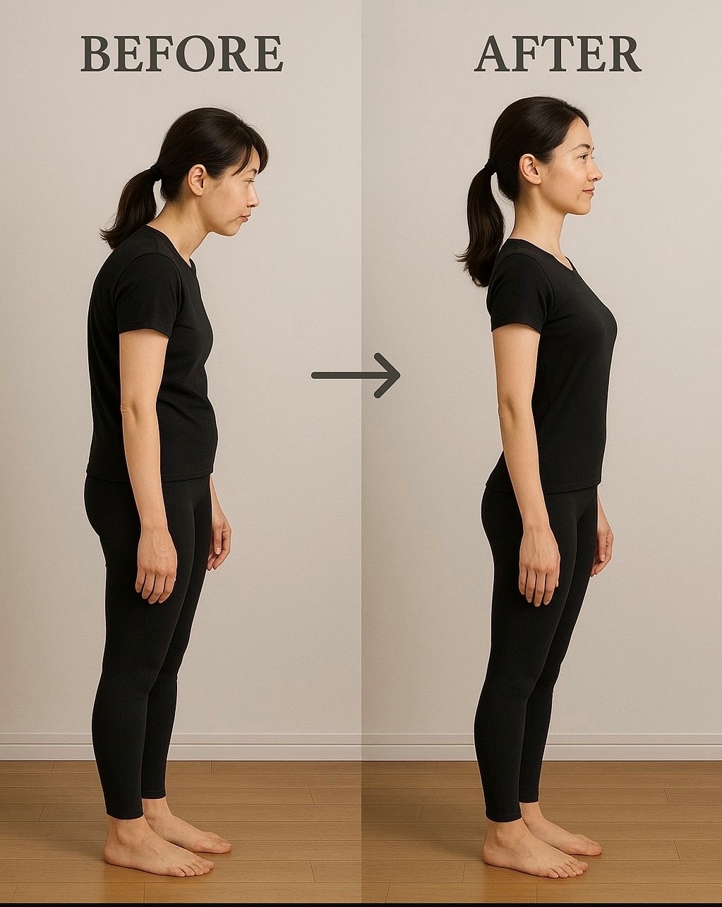 ★1回で効果を実感できますが、何度か繰り返し行うことでさらに姿勢が定着しやすくなります。